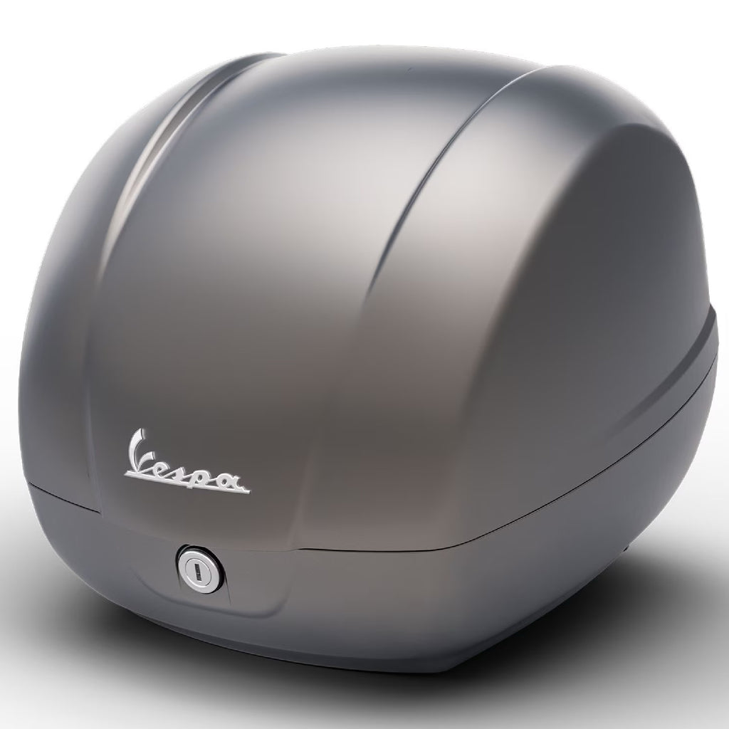 Painted top box, with a Fresh and modern design complementing the soft, flowing forms of the Vespa. It can hold 2 Jet helmets ECE 22.06. Available in colours to match your vehicle. Backrests sold separately as accessories and available in the same material and colour as the saddle.